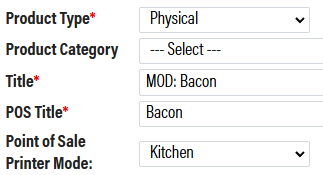 For the Title, you should include “MOD” so that you can easily identify this product as a modifier product. You can leave it out from the POS title.