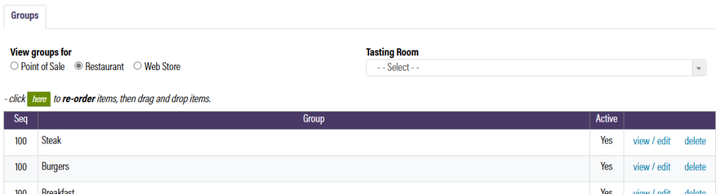 Next, view Restaurant groups. Find the group you’d like to add the modifiers to, then click view / edit.