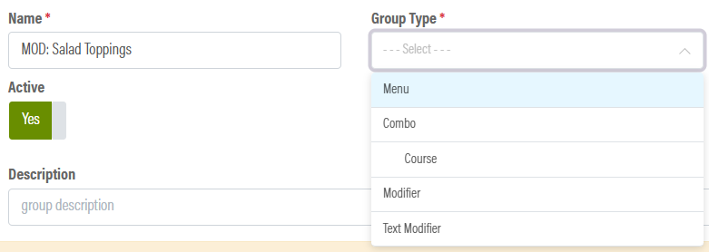 Change the Point of Sale Printer Mode to either Kitchen or Bar, depending on what items you are modifying. If you are using this modifier group to customize kitchen items, select kitchen. If you are using it to customize bar items, select Bar.