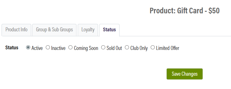 Save the changes, then go to the Status tab, and set the product to Active.