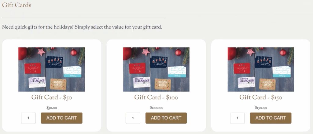 The gift cards are now available for sale on your webstore.