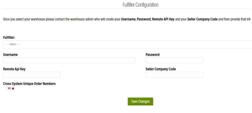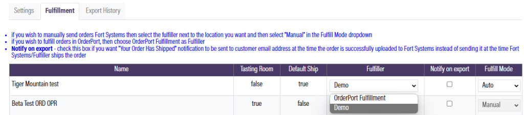 Next, go to the Fulfillment tab. This is where you choose which warehouses will use your third-party warehouse. The dropdown under the fulfiller column must be set to the third-party warehouse to have orders directed there.