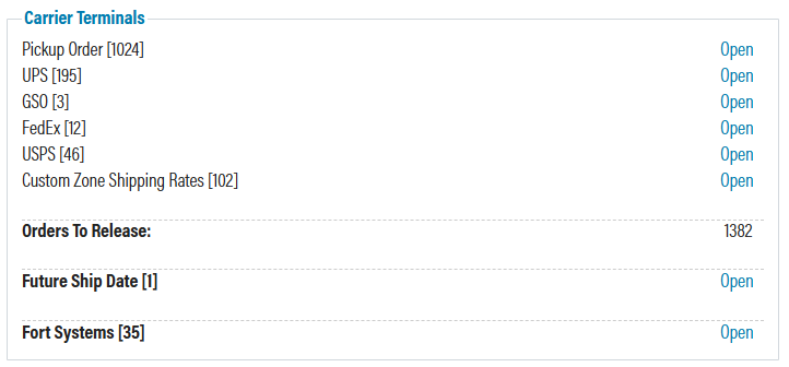 You will find the Fort Systems orders at the bottom of the carrier terminals section.
