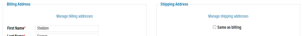 A customer can have multiple billing and shipping addresses. You can view them and set default addresses by clicking on the manage options.
