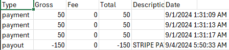 When you receive the payout in your bank account, you should compare that with the amount listed in the Total column.
