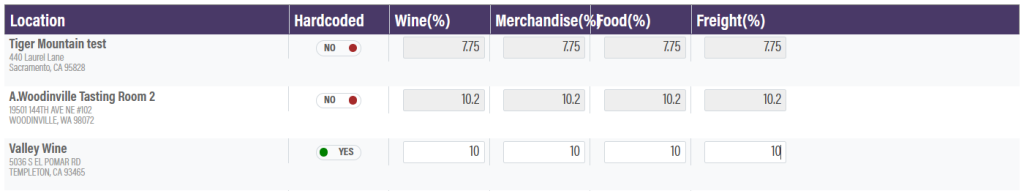 If needed, a tax rate can be hardcoded. When it is set to hardcoded, the tax rates must be filled an updated by your business manually.