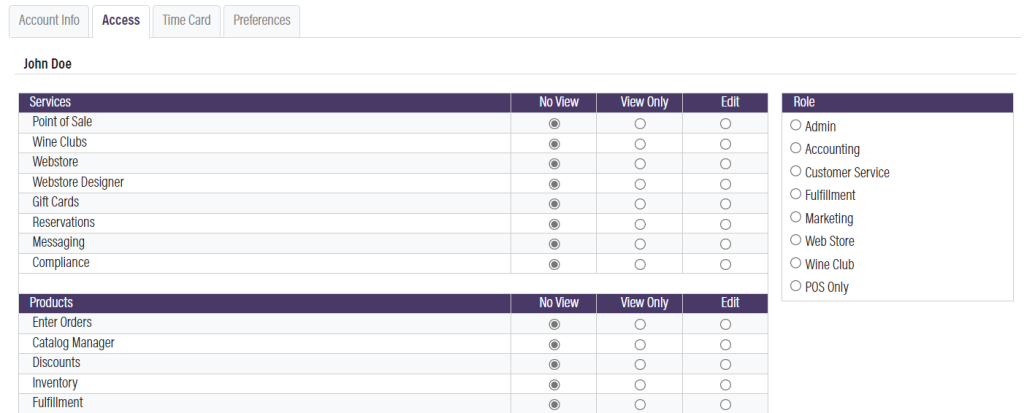 Selecting No View prevents the user from entering the module. View Only allows the user to enter the module without making changes. The Edit option allows the user to make changes.