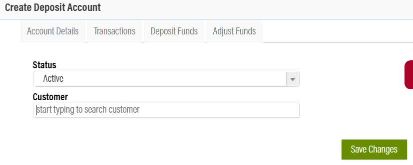 Customers do not have a deposit account by default. To make a new one, click on the “Create Deposit Account” button.