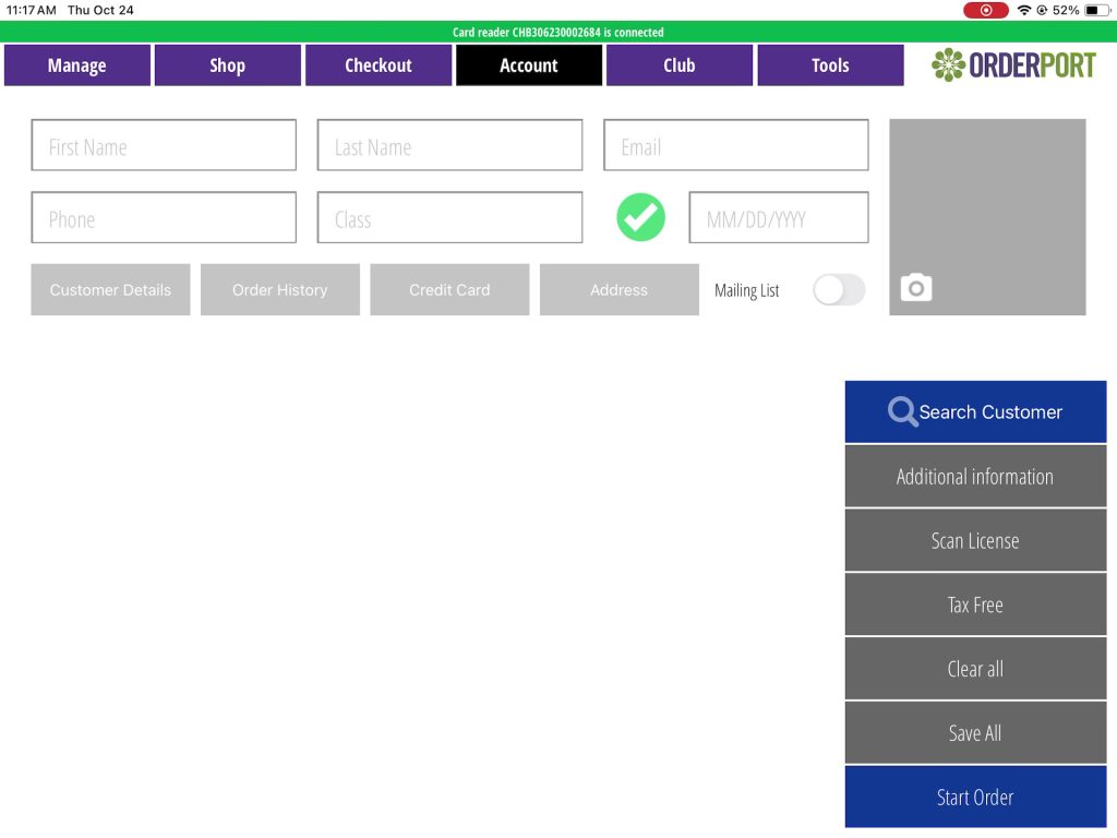 Card can be added to customer account within OrderPort Admin, as well as the Point of sale. This allows the customer to save their payment method and use it in their orders and as payment for wine club releases.