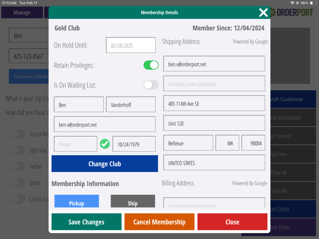 Next, tap on Customer Details. Under the Club Memberships section, tap on the club.