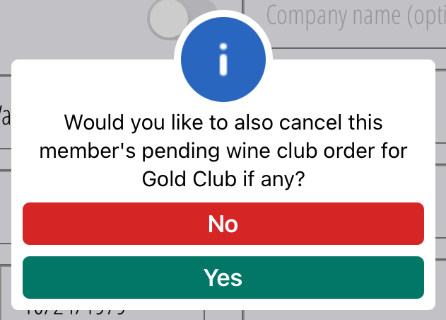 When it asks you if you’d like to cancel the pending wine club order, tap Yes.