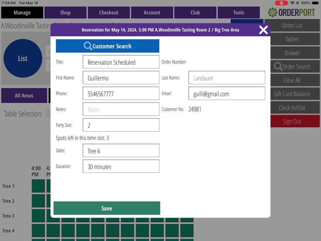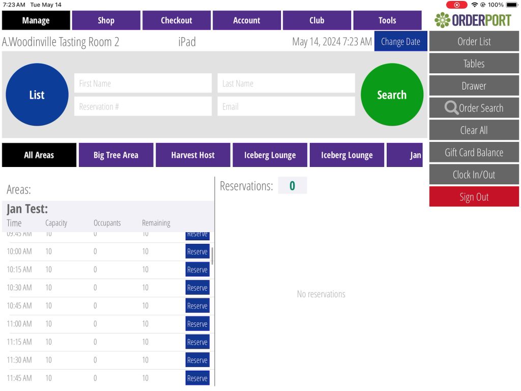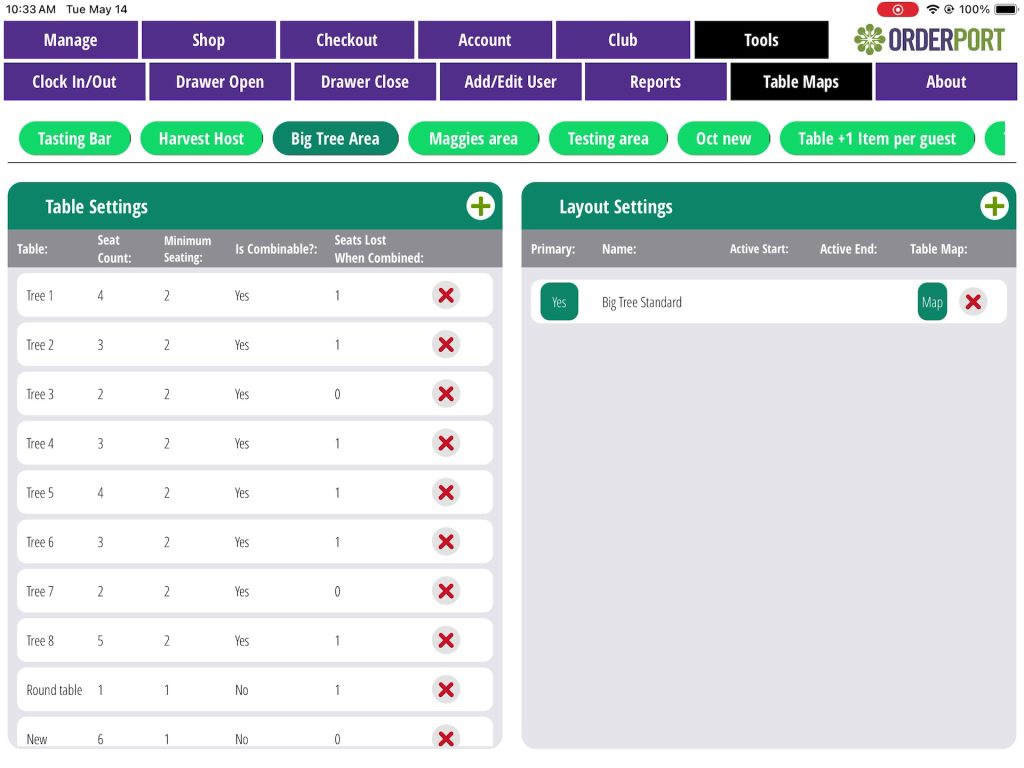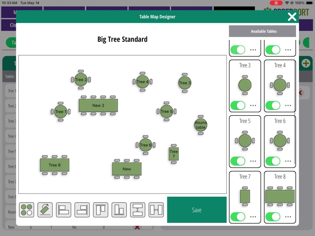 Table maps and layouts are customized in the Point of Sale. In this way, you can have customers reserve specific tables which are tied to physical locations. Only users with reservations module access on OrderPort admin will have access to the table maps.