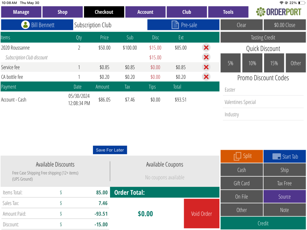 If you do not see this, then you will need to enable them in the settings tab of the point of sale module on OrderPort Admin.