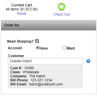 Search for the wholesale account, then add the products. Click checkout.