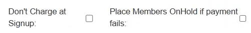 You can choose not to charge members upon sign up, and you can also choose to place members on hold if payment fails.